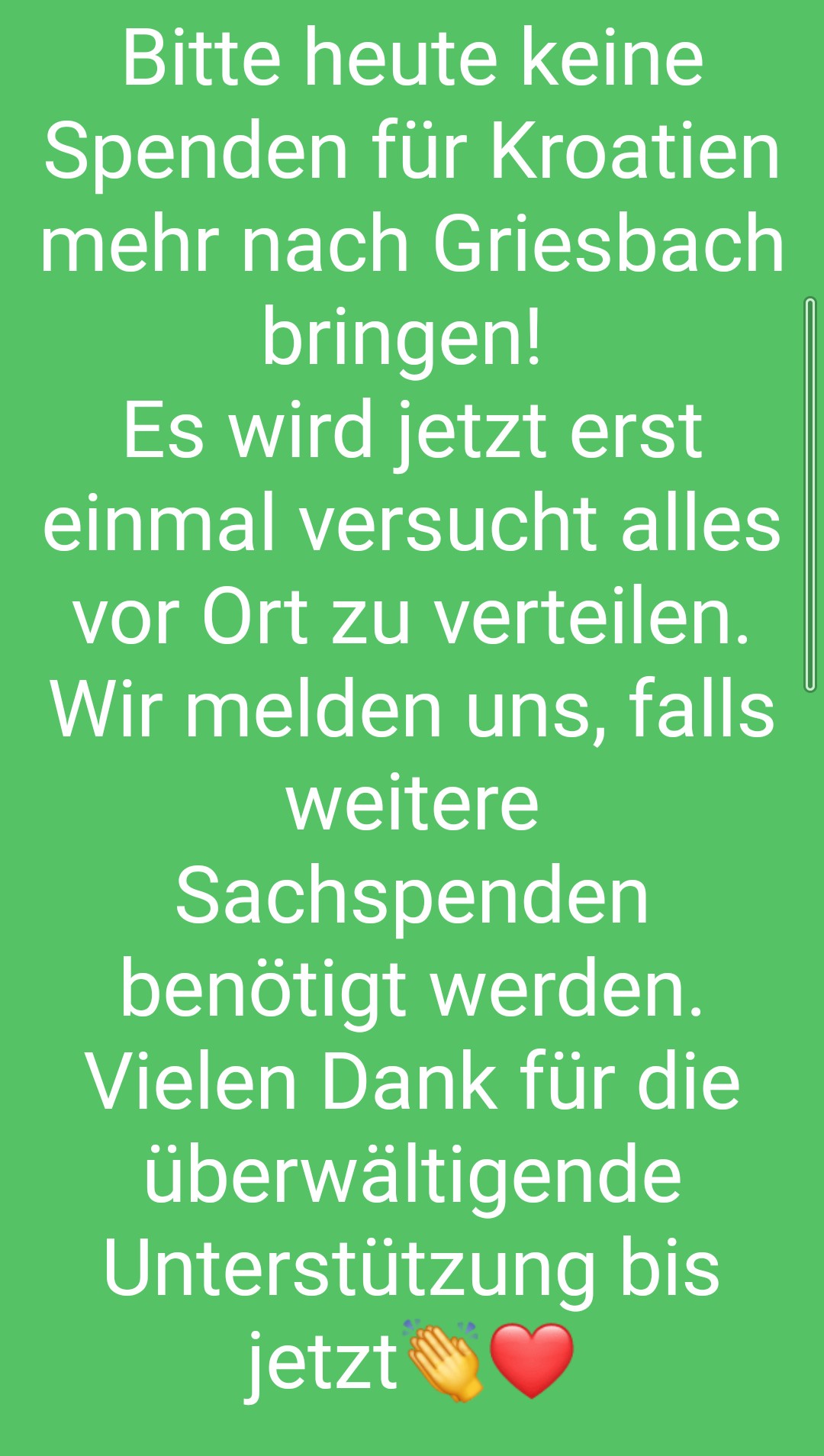 Zu guter Letzt bitten wir euch noch, nur zu den vorgegebenen Zeiten eure Spenden vorbeizubringen. Morgen sind wir nochmal von 13.00 Uhr bis 14.00 Uhr in Griesbach im Vereinsheim. Auch der FC Eintracht Landshut hat eine Spendenaktion hervorgerufen, auch hier können Spenden abgegeben werden.